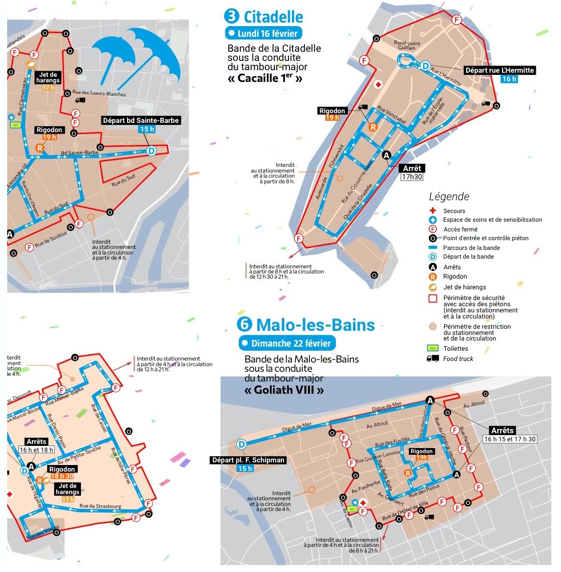Ci-dessous retrouve le parcours des principales bandes du carnaval de Dunkerque.