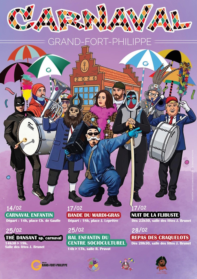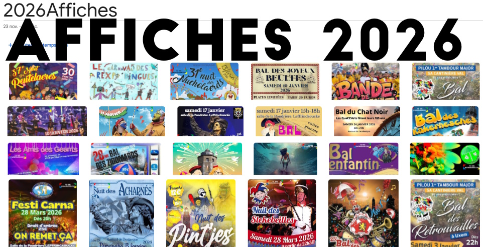 Classées dans l'ordre chronologique, retrouve la plupart des affiches du carnaval 2026 de Dunkerque et des alentours