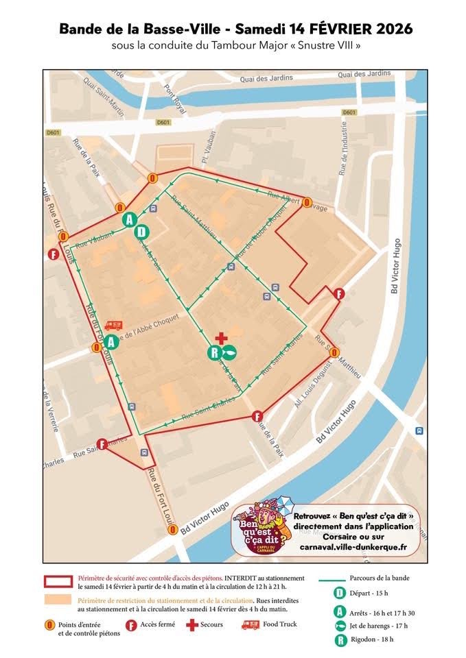 Ci-dessous retrouve le parcours des principales bandes du carnaval de Dunkerque.