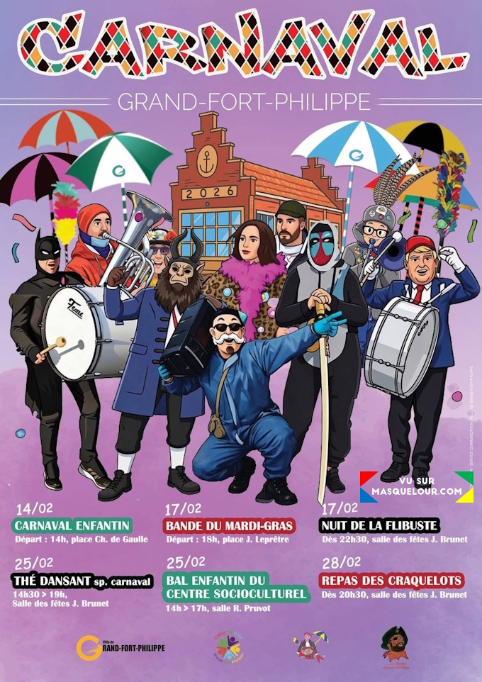Classées dans l'ordre chronologique, retrouve la plupart des affiches du carnaval 2026 de Dunkerque et des alentours